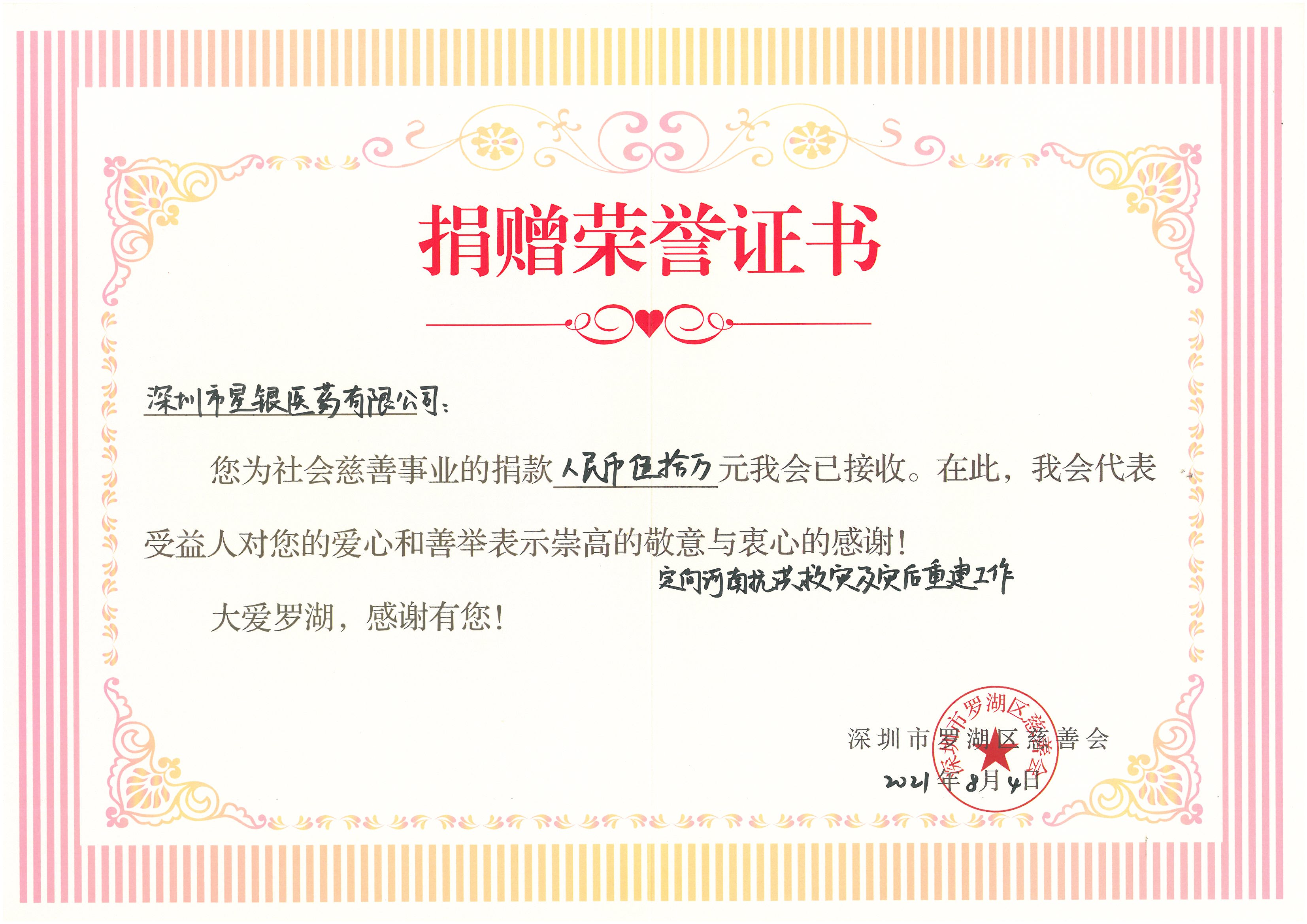 21/09-14星銀醫(yī)藥定向捐助現(xiàn)金50萬元支持河南抗洪救災(zāi)及災(zāi)后重建 7月17日以來,河南多地遭遇極端強(qiáng)降雨及由此引發(fā)的內(nèi)澇、泥石流、山體滑坡等自然災(zāi)害,給當(dāng)?shù)卦斐芍卮笕藛T...